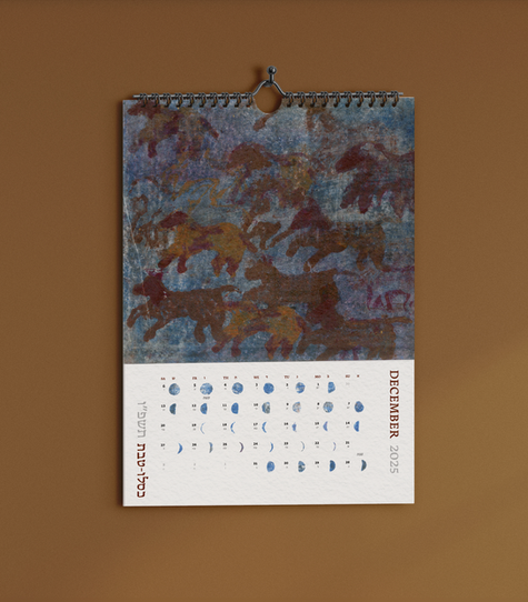 moon cycle calendar הוא לוח שנה עברי-לועזי המשלב את מופע הירח בשמים ואת תנועותיו בין שנים-עשר המזלות. בניסיון לשוחח עם המזלות האסטרולוגים המשתנים, לוח השנה נותן להם צבע, צורה ודימוי, הלוכדים את אופיים של מהלך כוכבי הלכת ועונות השנה. לוח הירחים נוצר מתוך רצון לחבר את עולמות האמנות והאסטרולוגיה ולקרב עוד ועוד אנשים